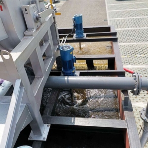 經(jīng)沉淀池沉淀下來(lái)的污泥,部分經(jīng)污泥回流泵回流到2級(jí)混合池繼續(xù)參與反應(yīng),另一部分則經(jīng)高剪切機(jī)進(jìn)行污泥剝離,并進(jìn)入磁分離機(jī)進(jìn)行磁粉回收,回收的磁粉再次進(jìn)入2級(jí)混合池繼續(xù)參與反應(yīng),剩余污泥則進(jìn)入后續(xù)污泥處理系統(tǒng)。加藥間調(diào)配好的PAC和PAM溶液由加藥泵輸送至各加藥點(diǎn)。PAC投加到1級(jí)混合池。PAM投加到3級(jí)混合池。